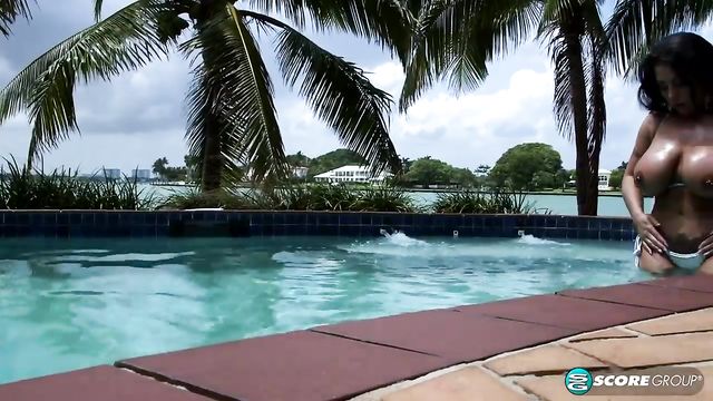 Description:Bikini girl Sheridan Love luxuriates at a swanky pool on a steamy Miami day. She makes it steamier. Sheridan needs to cool down so she kicks off her heels and drops her bikini top off her big boobs. Stepping into the pool, Sheridan ditches her bottoms and top. The cool water refreshes her hot bod.