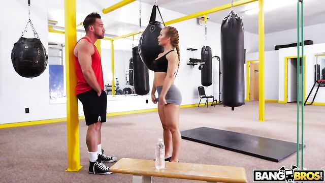 Description:Nicole Aniston happily walks in the gym careless about being late as the trainer Johnny Castle just stands there. He goes off on her being late and wasting his time and has her do push ups as warmups. He yells at her and at the same time his penis comes out of his shorts to hit her shoulder. She takes a water break where he follows her to rudely interrupt her. She starts yelling back at him to find out whats going on and decides to help his girlfriend problems by going down on him. She sucks him off and takes him into the boxing ring where she has him lick her pussy before fucking her. She got wildly fucked until she gets her hard earned creampie.