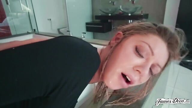 Descrição: Busty blonde porn superstar Karma RX is a submissive fuck doll who loves pleasing and satisfying the sexual needs and erotic desires of her sadistic master, James Deen. When JD is not home, Karma is kept inside a closet like a toy in its box. As soon as James gets home, he immediately goes to play with Karma. He takes her out of the closet and starts touching her big tits and sensitive pussy. The king of rough sex shows Karma that his moniker is not only for show. He fingers Karma's tight pussy hard while choking and slapping her. After having fun fingering Karma, James Deen pushes her to the ground. He then uses his feet to humiliate and please the naughty blonde at the same time. James lets Karma suck his toes before trying to stick his feet inside her pussy. Moans of pleasure fill the room as Karma cums over and over again while JD eats out her ass and pussy. Karma returns the pleasure by giving JD a sloppy blowjob. He grabs her by the hair and pushes his cock down her throat. Karma can't help but gag out loud as the tip of James' dick reaches the back of her throat. James fucks the curvy tattooed bombshell in multiple positions. Karma can't help but cum over and over again as JD pounds her wet coochie in missionary and doggystyle. Her huge tits and round ass bounce gracefully while she rides his cock in cowgirl and reverse cowgirl positions. The horny couple continues to ravage each other all around the house. They continue to rock each other in multiple positions until JD feels like he is about to cum. He pulls his cock out of Karma's pussy and blasts his huge load all over Karma's face. The dripping cum on the gorgeous slut's face makes her lustful whore look complete.