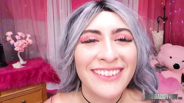 Descrição: Purple haired small perky tits teen Angeline Red gives JOI to her step daddy.
