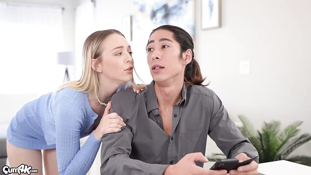 Descrição: Lily can’t wait for David to get done with his work call and demands creampies.