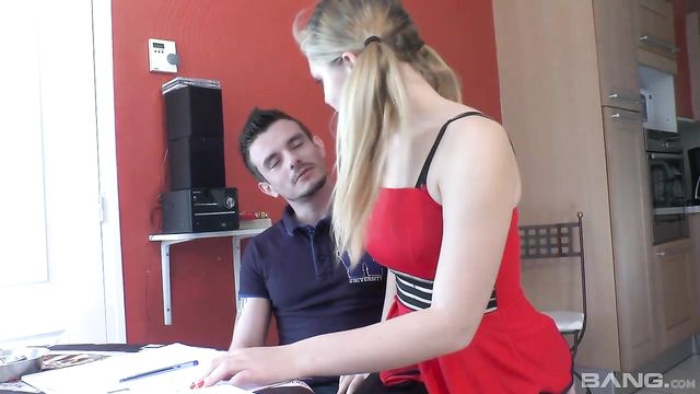 Descrição: Sindy Lova was trying to study for her college final but maybe wearing that slutty lingerie wasn't the best idea because her study partner was completely distracted! Now you get to see what they did during their study break! Sindy gets up on the table so he can fuck her from behind and slip it in her asshole!