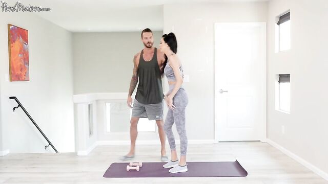 Descrição: Jamie invites her trainer into the shower after a hard workout. They move things into the bedroom for passionate sex.